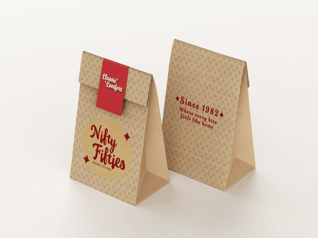 Nifty Fifties is a restaurant rebrand focused on refreshing the visual identity of a retro-inspired dining experience while maintaining its nostalgic charm. The project explored how typography, color, and packaging could reinforce the restaurant’s 1950s theme while improving visual consistency and brand recognition. The goal was to create a system that felt playful, memorable, and reflective of the diner’s personality.